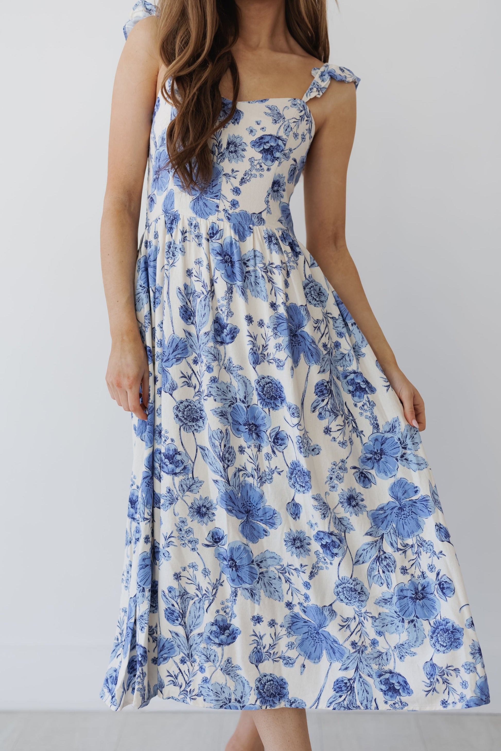 Si hei til den nye "Tea Party Kjole!" Vi kan ikke få nok av det hevede designet og den feminine følelsen denne kjolen gir. De blå blomstene gir kjolen en kystfølelse, samtidig som den også føles elegant. De volangermene og den enkle halsen gir det den uanstrengte stilen for våren. Kombiner denne kjolen med et klassisk par hæler!